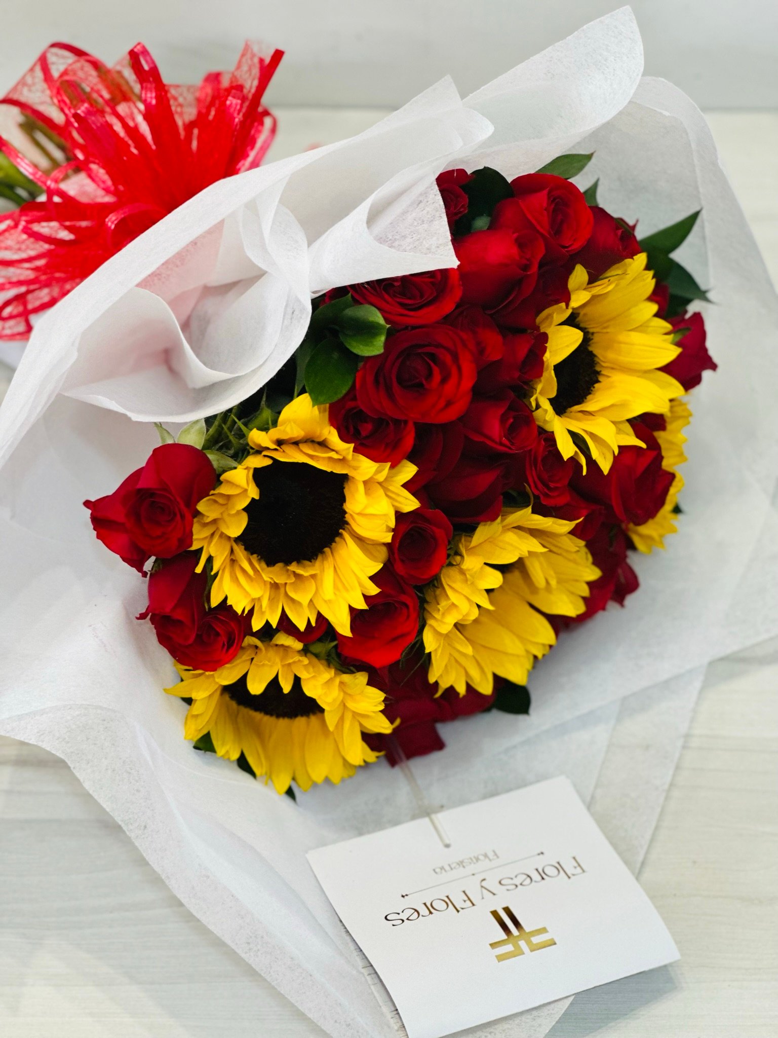 Bouquet of sunflowers and roses
