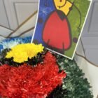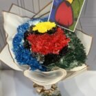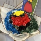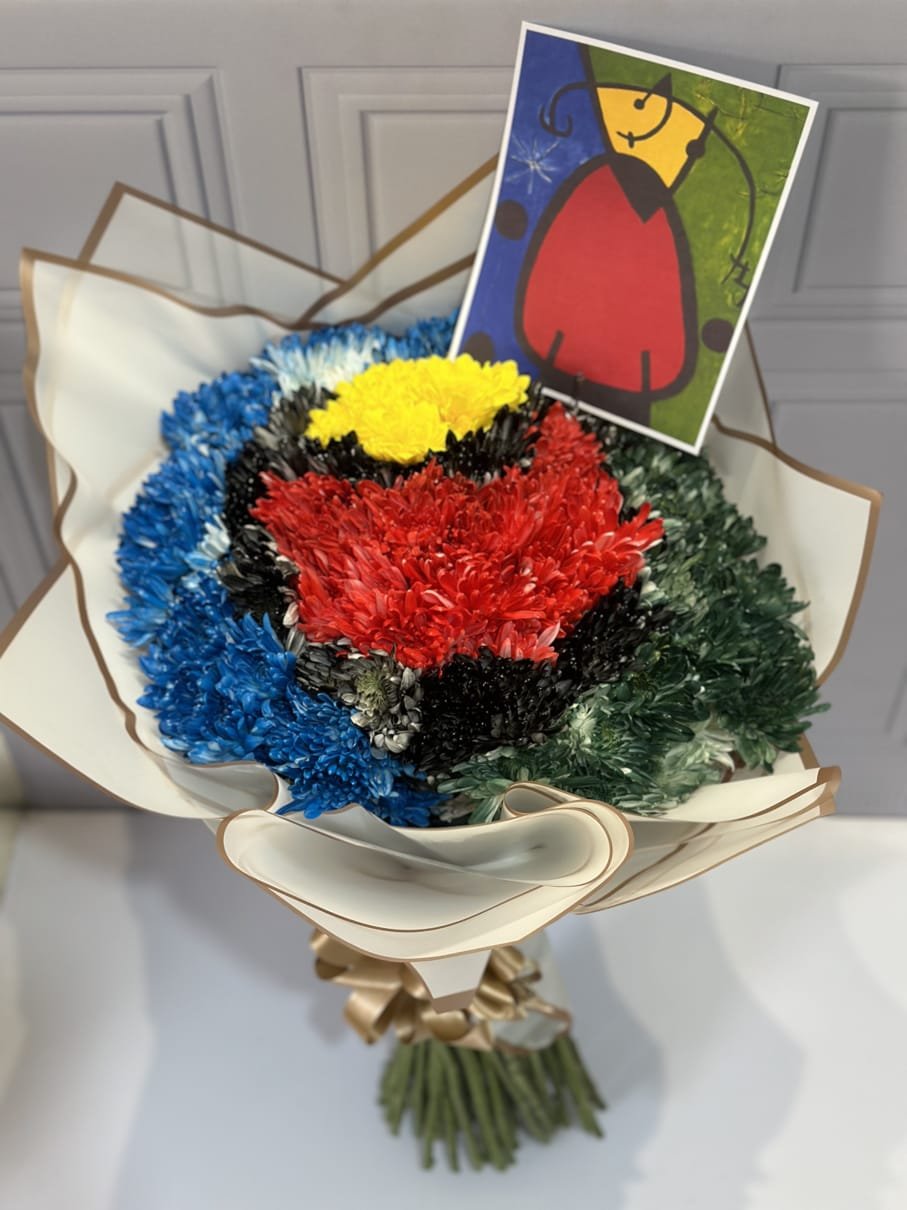 Hermoso bouquet inspirado en la famosa obra de Joan Miró amanecer , incluye tarjeta con mensaje personalizado y foto de la obra de arte.