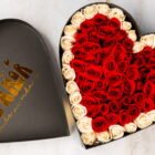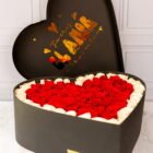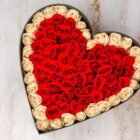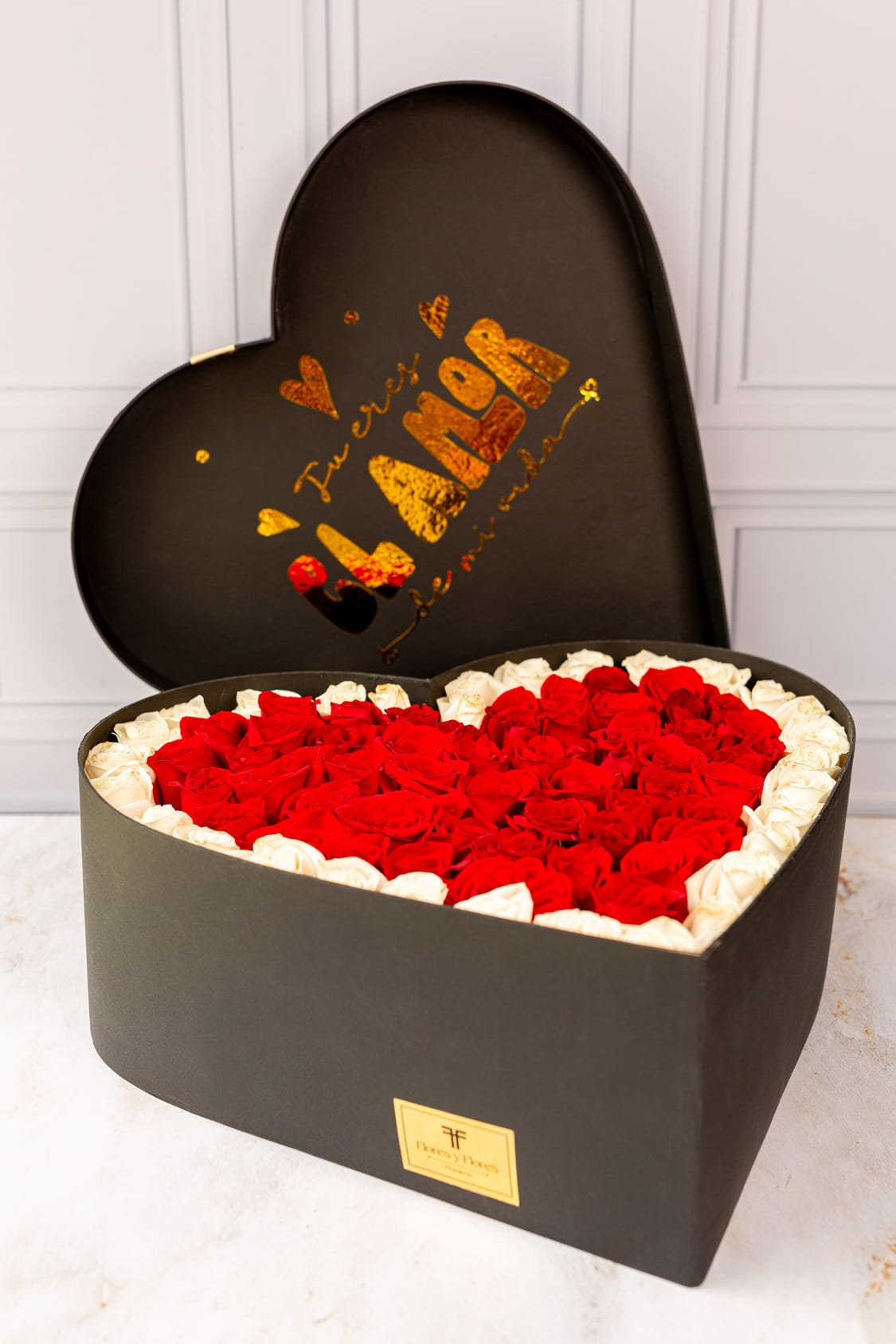 Large luxury heart with 80 red and white roses, with a message of love and friendship on the lid of the box, a beautiful presentation perfect for surprising, includes a card with a personalized message.