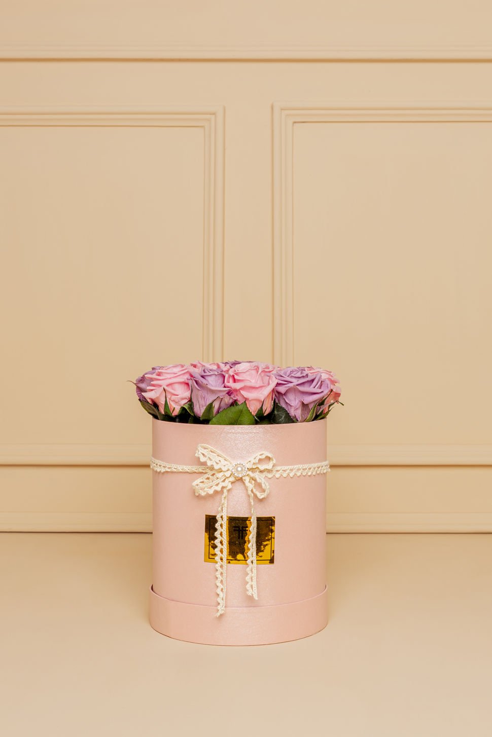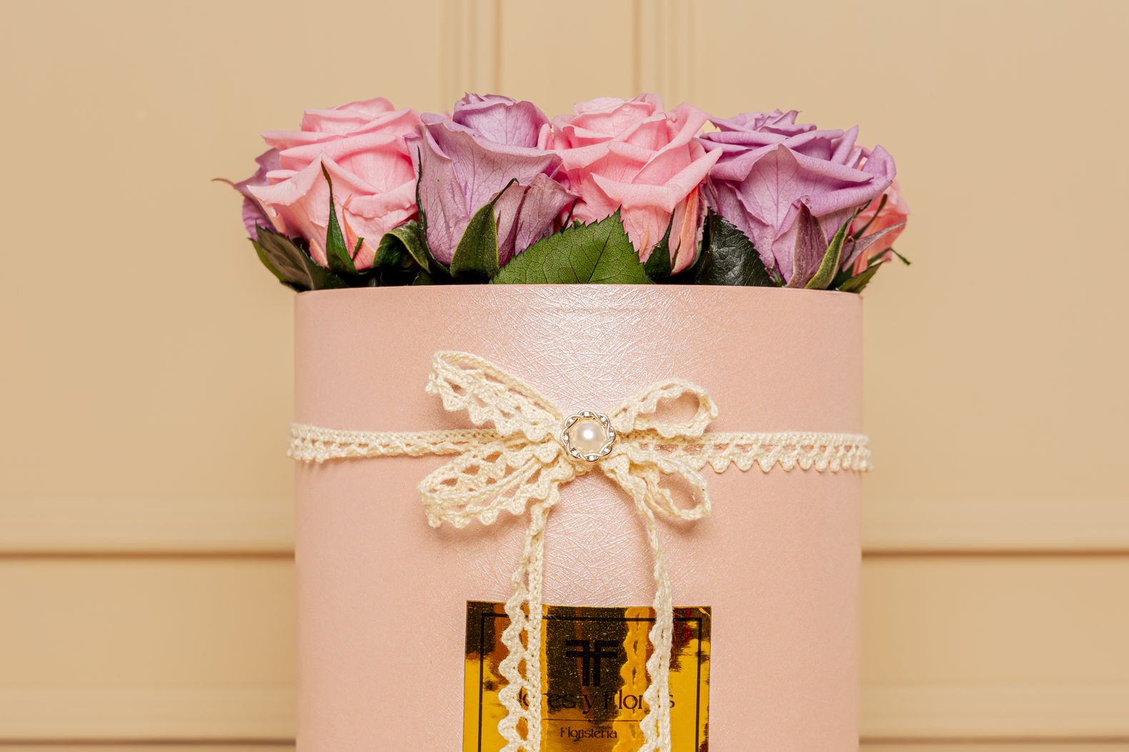 Beautiful pink box with preserved roses in shades of lilac and pink. A delicate design in pastel tones that combines elegance and tenderness. These roses have been carefully selected to last for years, making them a timeless gift that expresses the love for Mom. Includes a personalized card and a card with the care instructions for the floral arrangement.