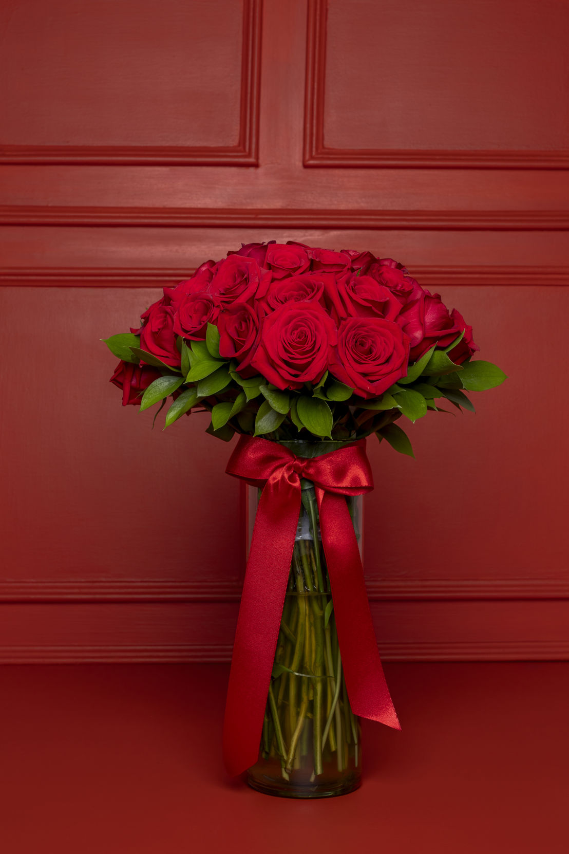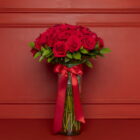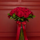 A timeless expression of romance. Classic Love is composed of 50 premium red roses, expertly arranged with seasonal greenery in an elegant crystal vase, finished with a refined decorative ribbon that highlights the natural beauty of the roses.