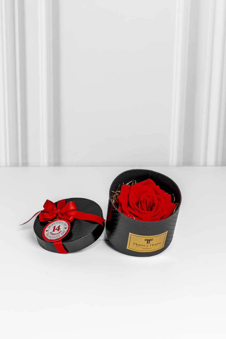 Beautiful preserved red rose in a luxury black box, with a special Valentine’s Day edition message, lasting more than two years, includes a card with a message and care instructions.