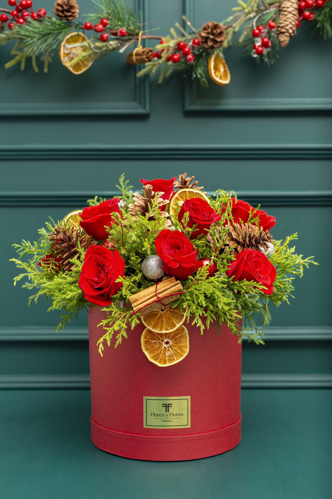 This beautiful arrangement is the perfect centerpiece to celebrate the holiday season with style and sophistication. The warmth of red roses, the freshness of green foliage, and the charm of festive details such as dehydrated orange slices, ornamental pine cones, and a subtle cinnamon stick, which provide a rich fragrance and an artisanal touch. Ideal as a gift or to decorate any space, this arrangement captures the essence of Christmas. Perfect for surprising someone special or adding a festive touch to your home, the essence of the forest is much more than a floral arrangement; it is a tribute to the beauty of the season. Includes personalized card.