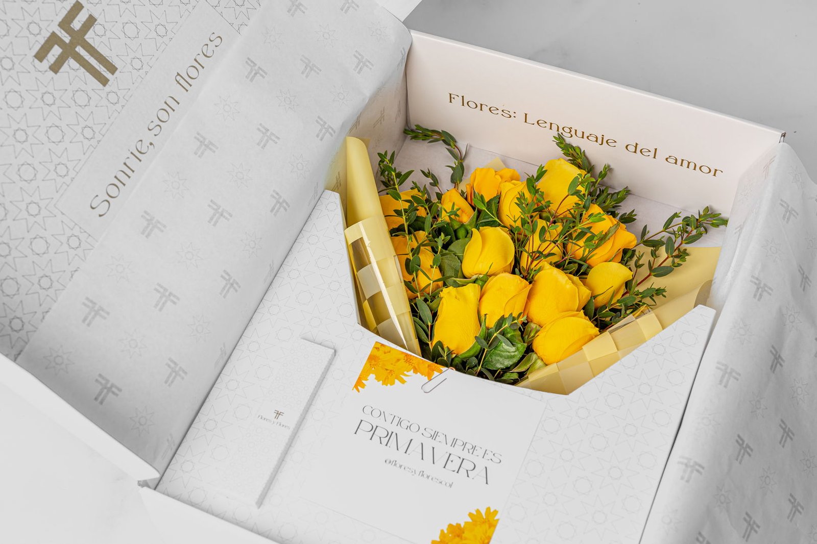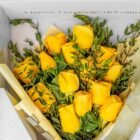 Luxury and floral art come together in this spectacular edition, a beautifully designed box, accompanied by a floral arrangement made with yellow roses, wrapped in luxury paper. To complete this beautiful design, it includes our special edition Velvet Roses fragrance, with fresh, floral notes that will surprise your loved one. It includes a card with a personalized message and care instructions for the floral arrangement.