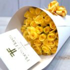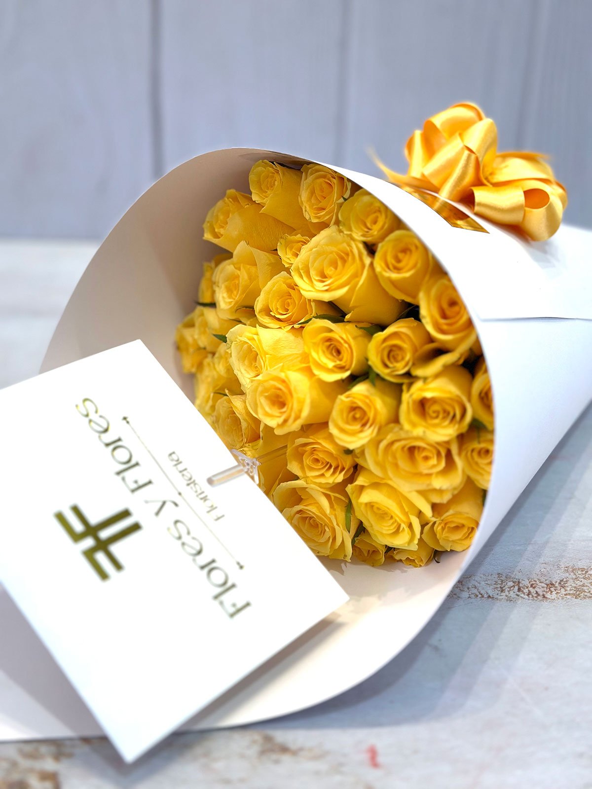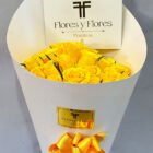 Beautiful cone (you may receive a black or white cone) with yellow roses, perfect for surprising someone. Includes a personalized message and card.