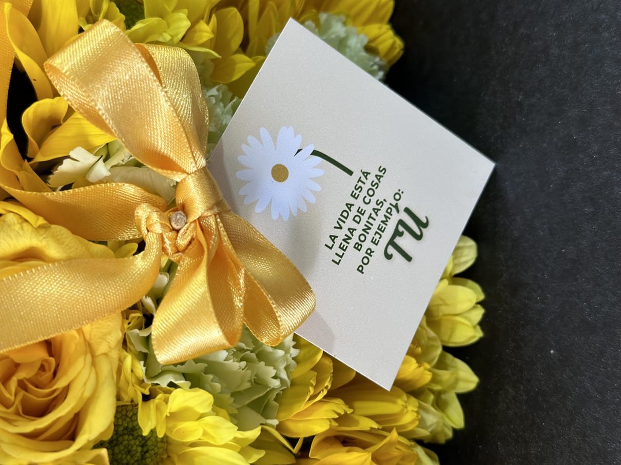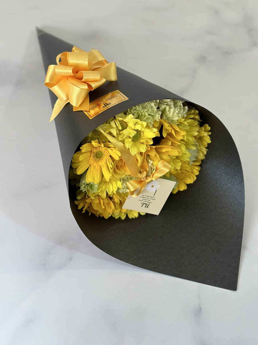 Beautiful bouquet of a mix of yellow flowers and seasonal foliage, perfect for surprising, includes a card with a personalized message