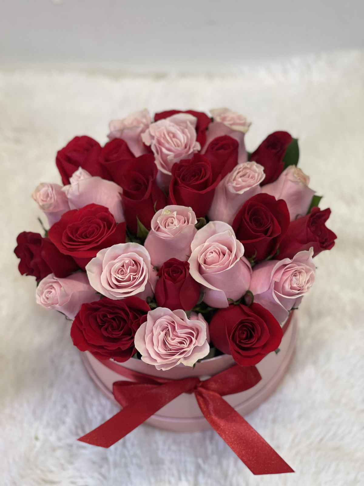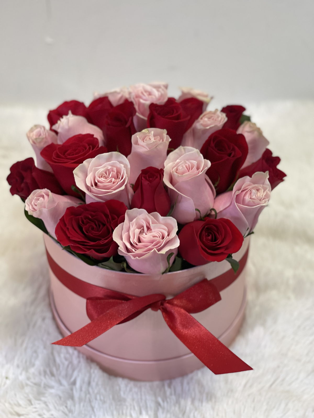 Beautiful pink box, with 25 red and pink roses, includes a personalized message that will surprise that special person.