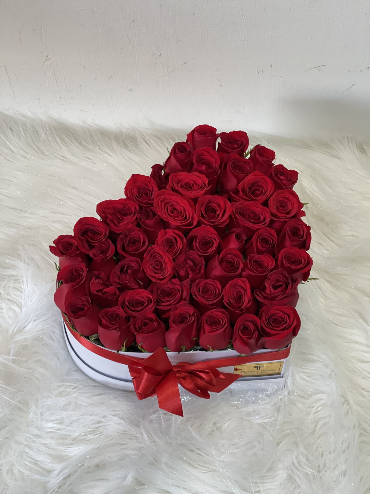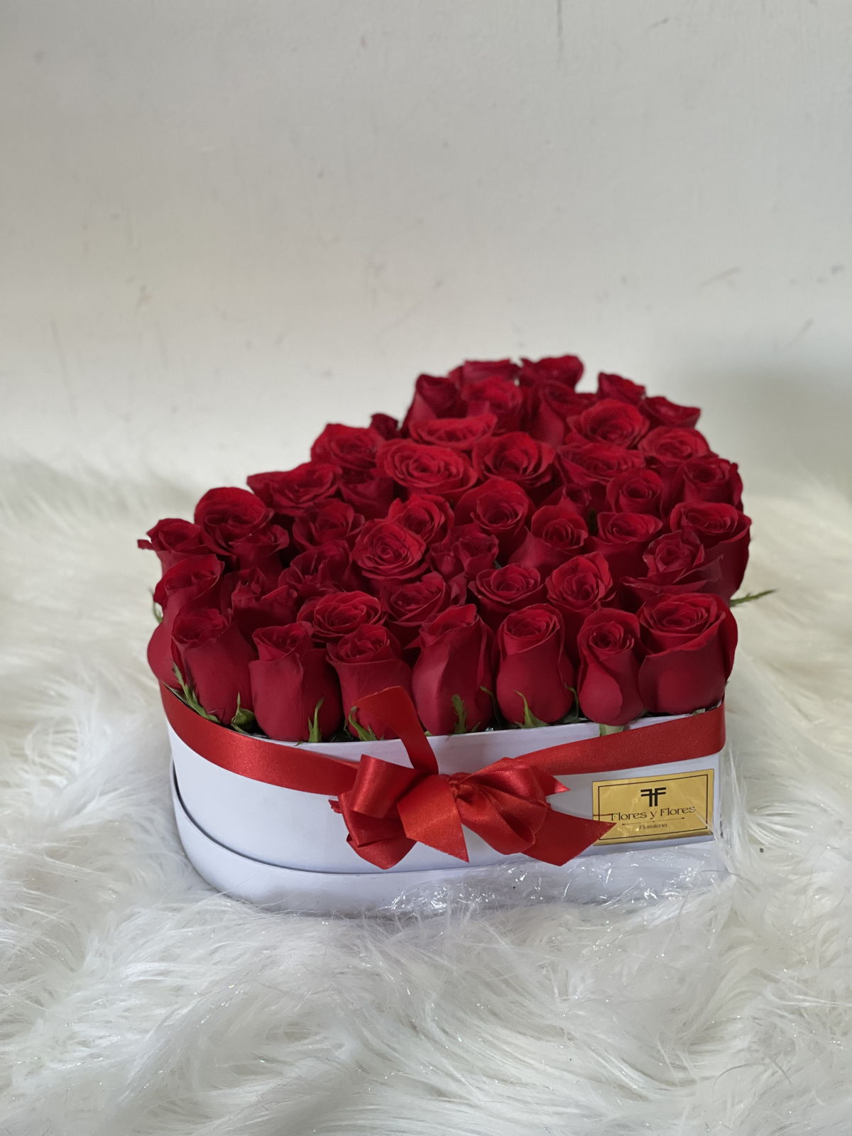 Beautiful luxury heart of 45 reds in beautiful presentation.